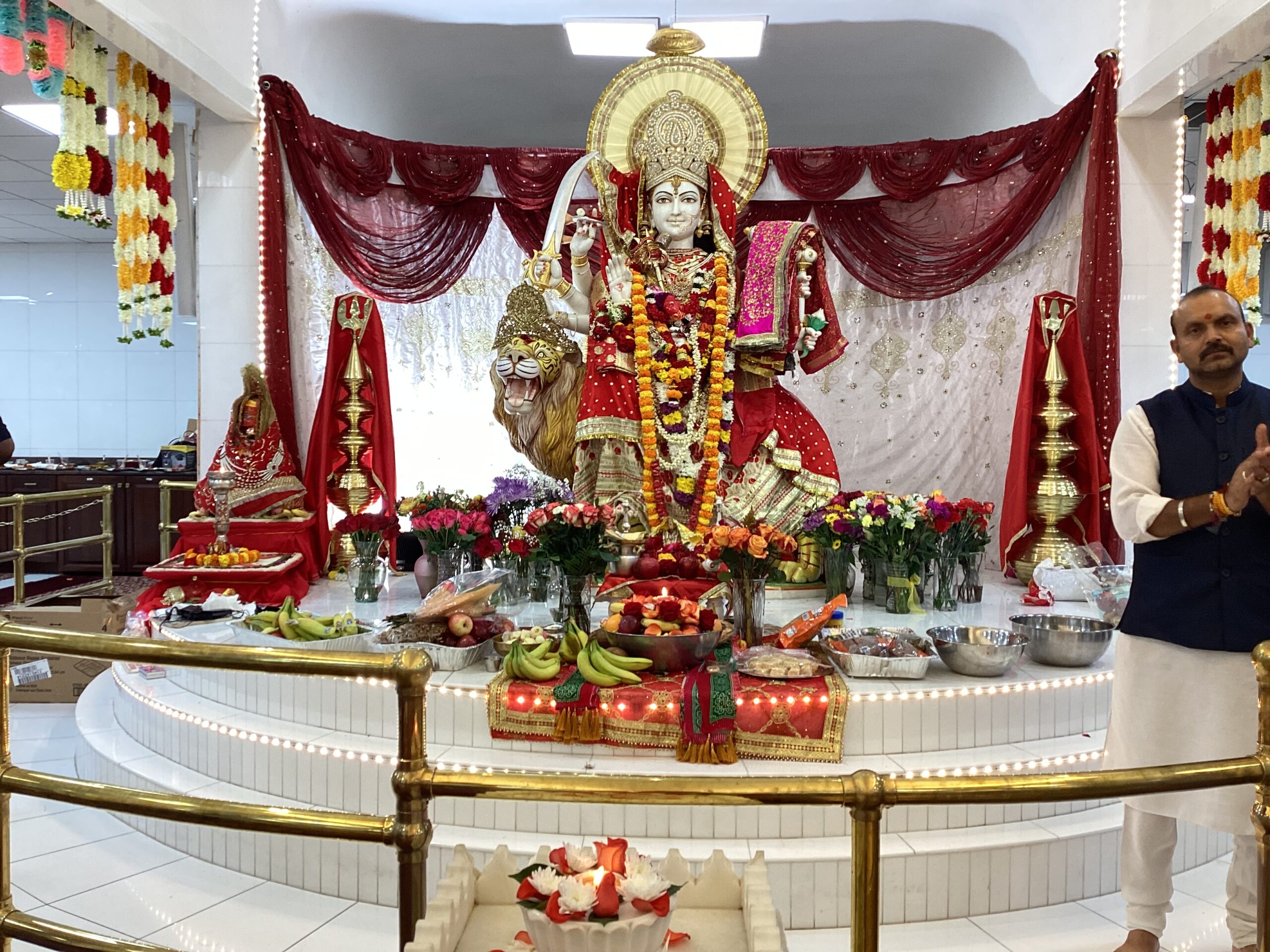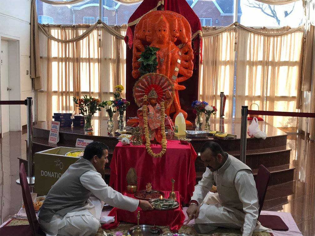 From New York & North Take NJ Turnpike to exit 9 (New Brunswick, Route 18 North). Take route 18 North. After 1 mile take Route 1 South for approximately 11 miles. After passing Best Western on your right, make right on Raymond Road. After one mile turn right on traffic light to Route 27 North. Second building on your right is DURGA MANDIR across Kingston Mall.